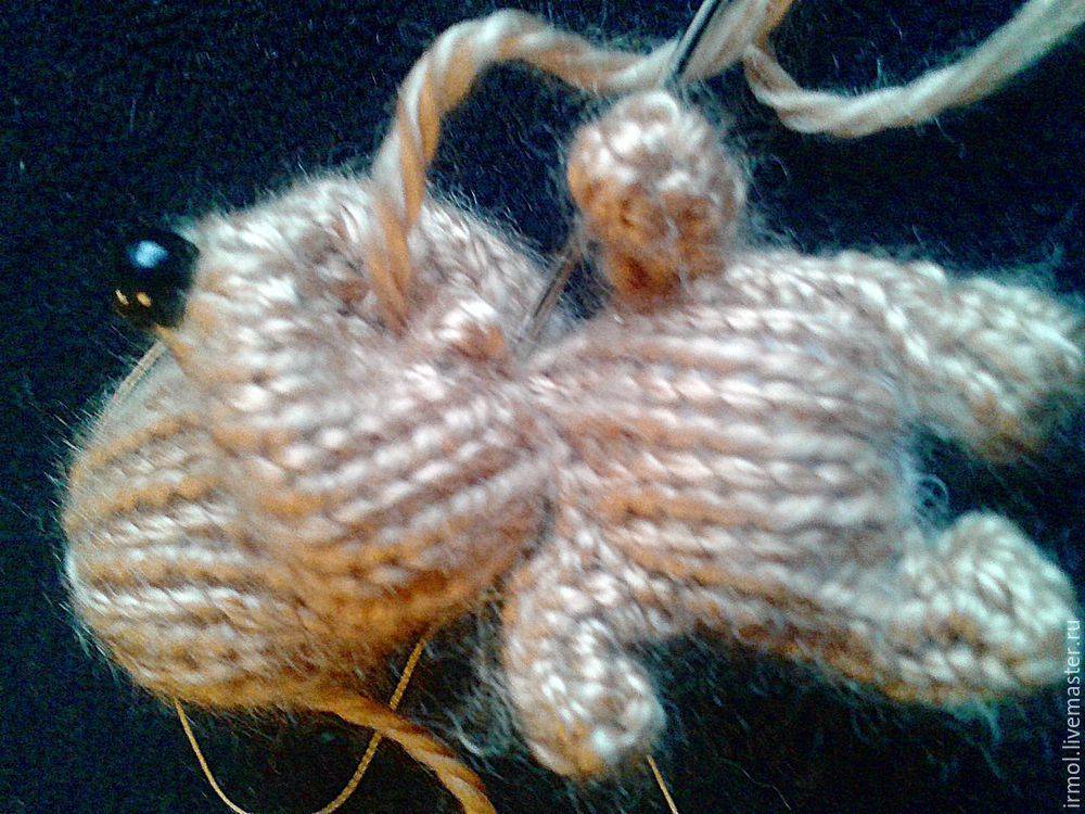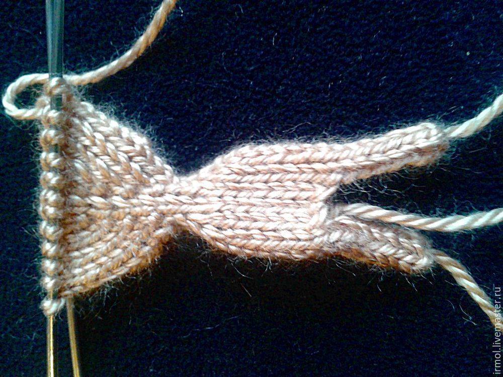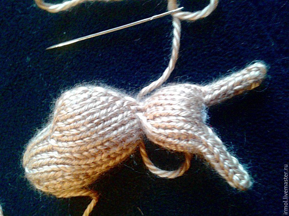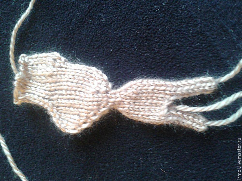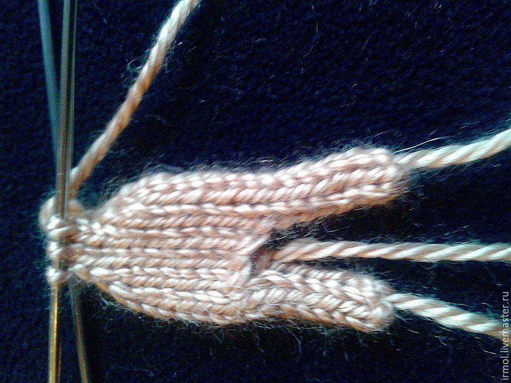 - Когда на спицах осталось 6 петель провязываем хвостик нужного размера.