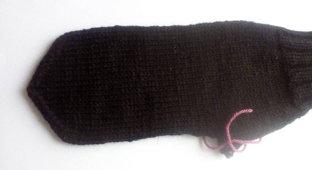 - Вяжем варежку целиком, пока не достигнем размера первой части.