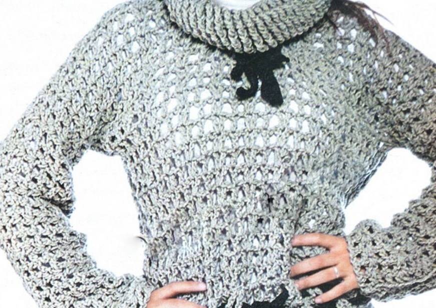 Свитер женский крючком «Пленительная сеточка»: схема, описание, фото