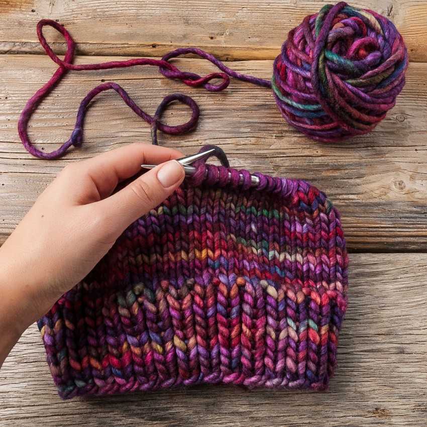 - Продолжите вязать, чтобы длина Вашей работы составила 5 см.