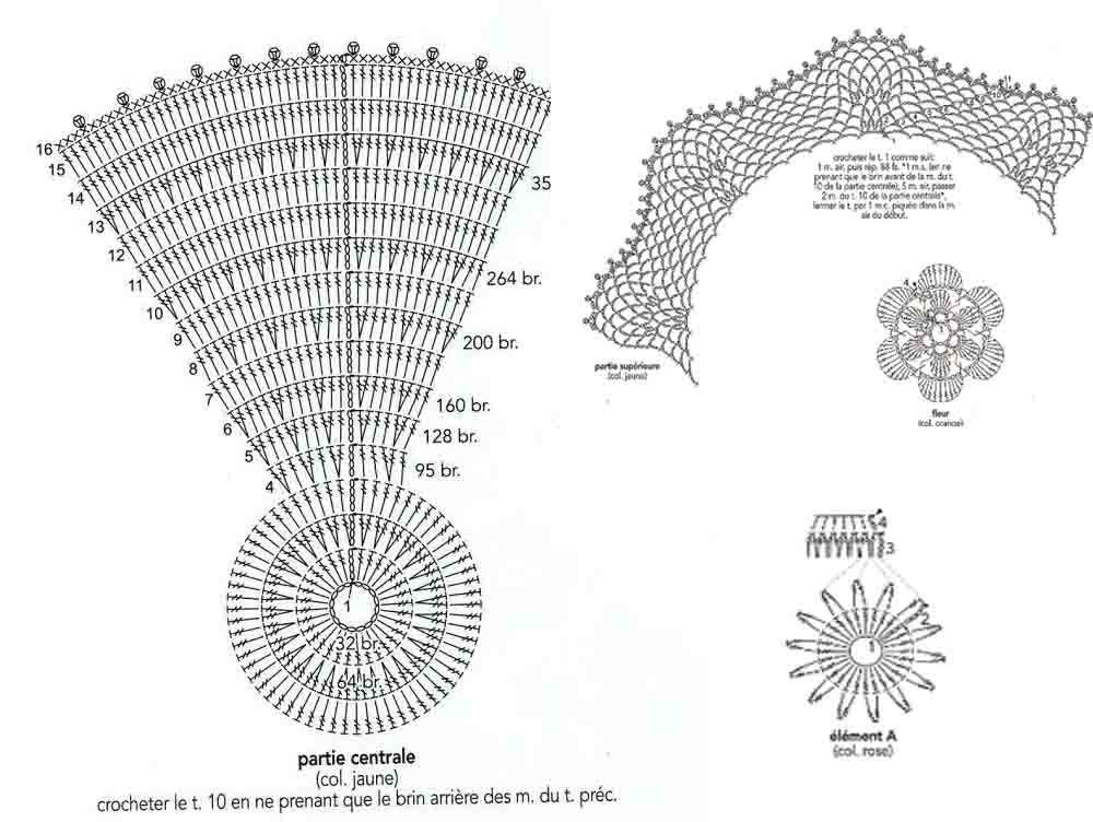 - Формируем 2 вс. п. над столбцами с накидом предшествующего ряда, 3 возд.п. подъема на цепочке из 2 возд.п. предыдущего яруса, 6 столбцов с накидом в цепочку из 2 возд.п. С пятикратным повтором делаем 3 возд.п., столбец без накида ввозд.п. предшествующего ряда, 3 возд.п., 7 столбцов с накидом над следующей цепочкой из возд.п. Заключительный этап состоит в создании соединительного столбца в столбец из 3 возд.п.