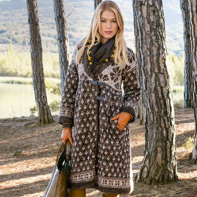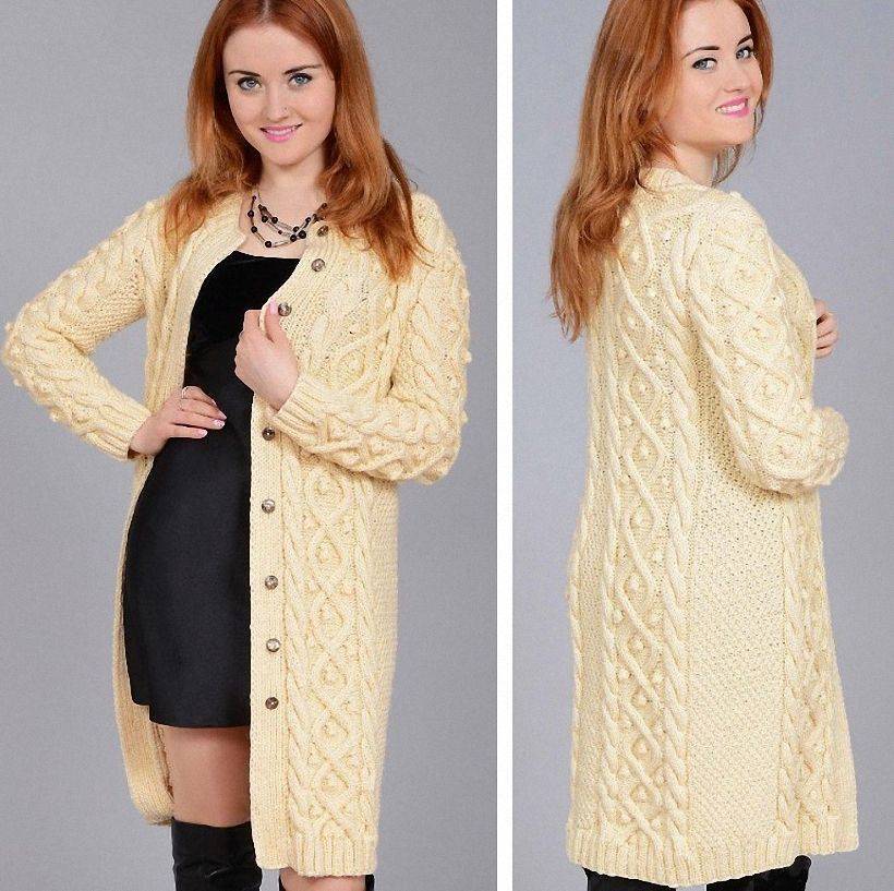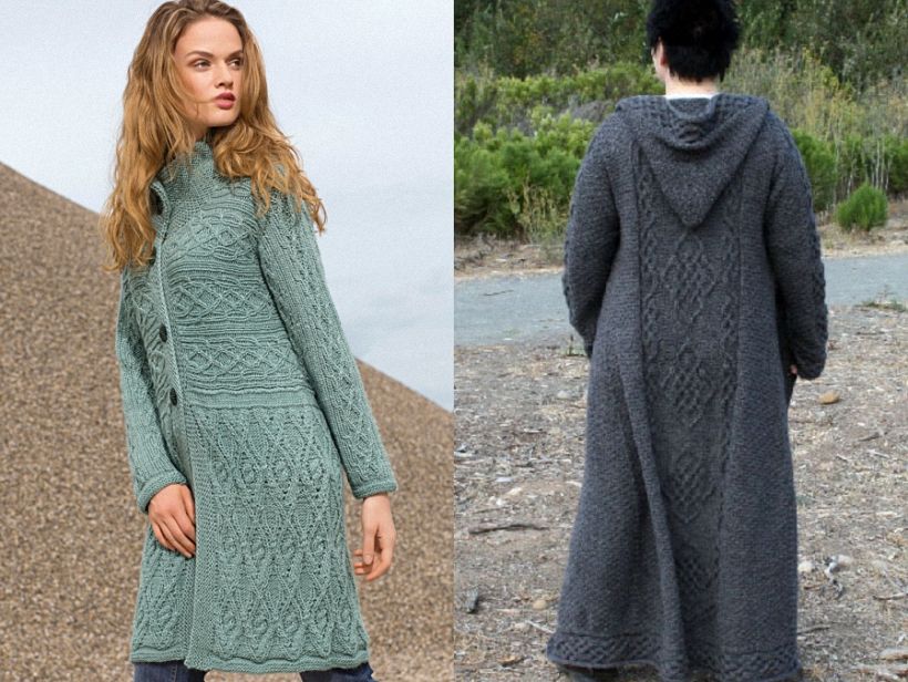 Рукодельницы знают немало таких узоров, они способны понять сложную схему или придумать свою интерпретацию аранских узоров. Теплое пальто с «косами» и «восьмёрками» из овечьей пряжи, ламы и альпака отлично смотрится на любой фигуре. Его носят до морозов.