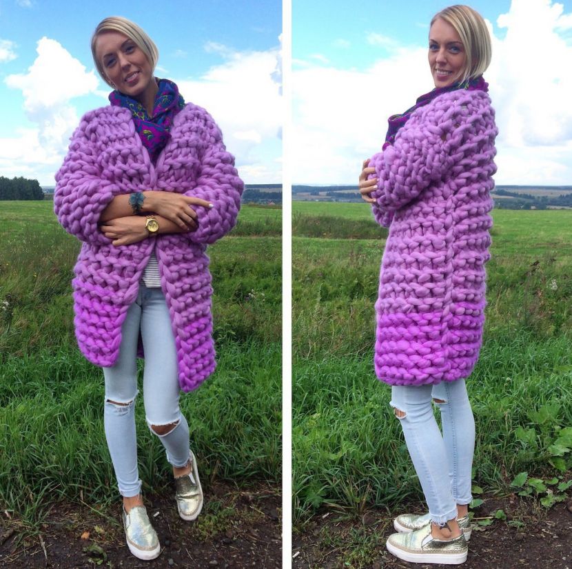 Из крупной пряжи – изделия получаются невероятно мягкими, можно создать множество привлекательных образов. В основном, такой вид вязания подходит девушкам со стройной фигурой. Крупная вязка визуально добавляет формы.