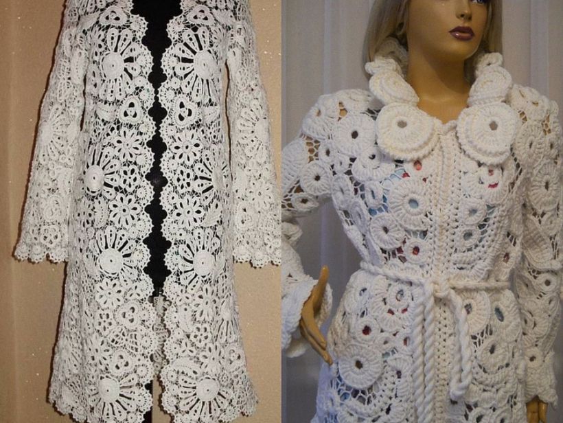 Из ирландского кружева – шикарная, плотная вязка со сложной техникой исполнения с кружевом, как правило, это листочки и цветы.