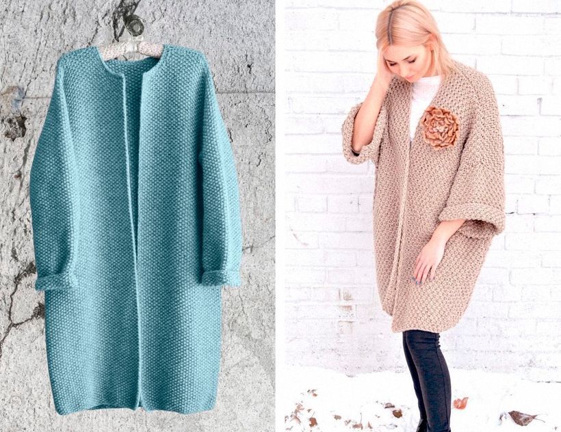 Теплое пальто спицами из толстой пряжи: схема с описанием