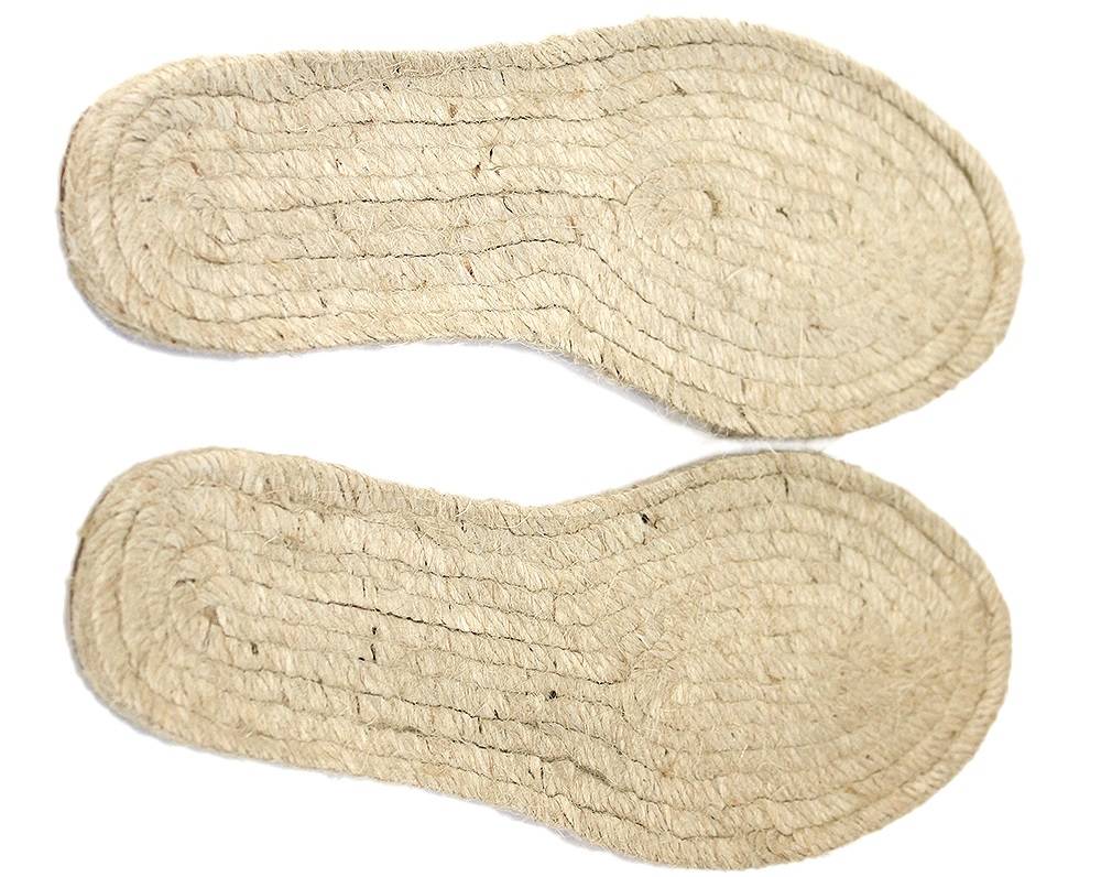 - Джутовую. Она отлично подходит для летней обуви. Крепление осуществляется иглой, крючком, иногда дополнительно используется клей.