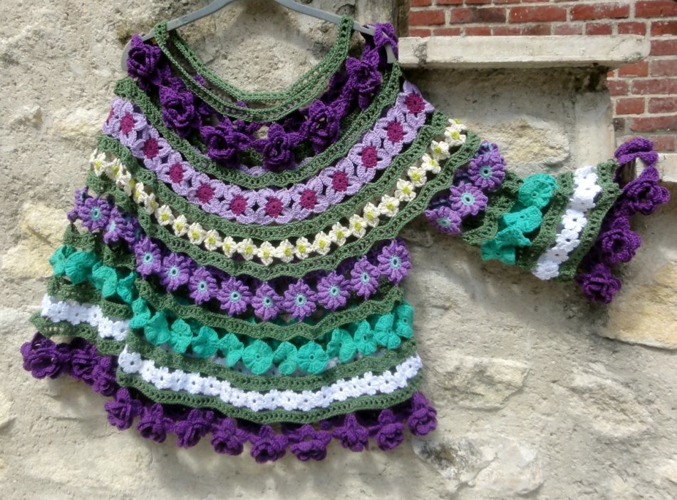 Собрала все остаточки ниток и навязала крючком квадратиков. Получилось летнее пальтишко. Очень его люблю, оно такое яркое и радостное. Когда его надеваешь, сразу улучшается настроение! Желаю всем хорошего настроения в любую погоду. Вяжите с удовольствием.
