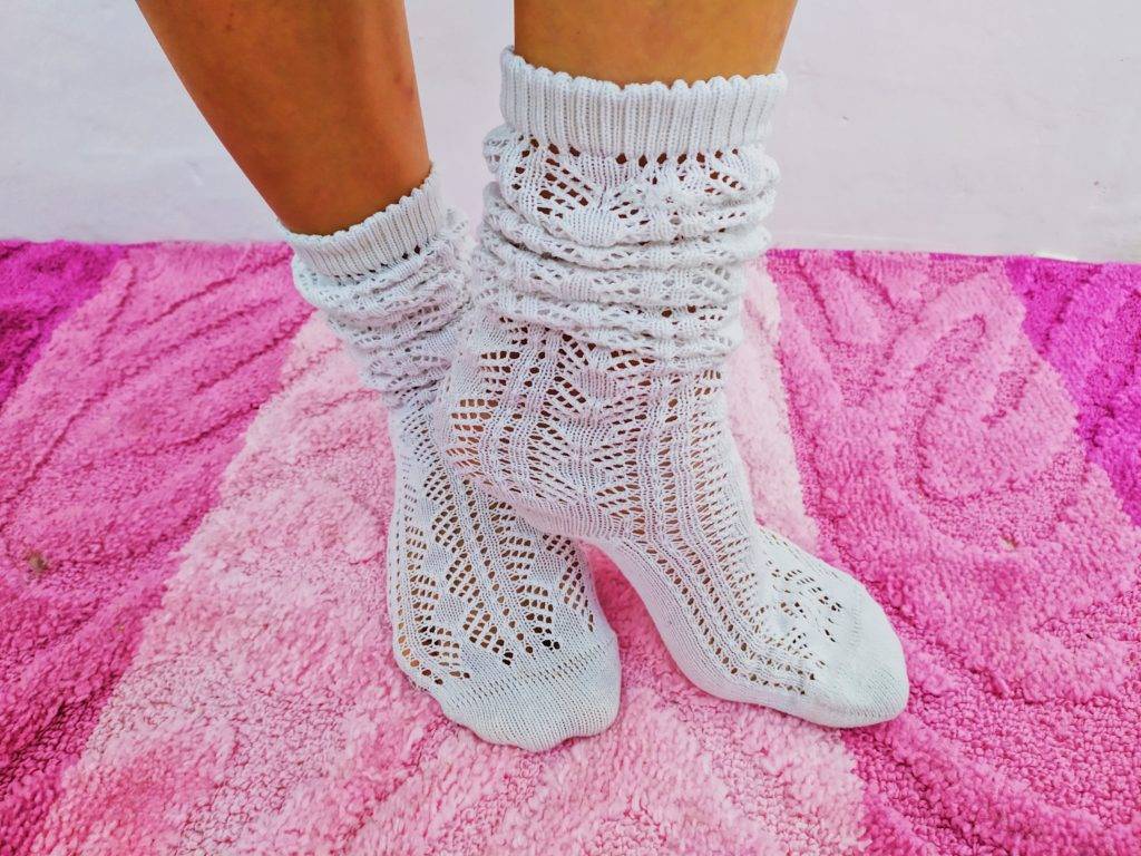 Одним из самых простых способов создания ажурных носков является вязание их по спирали. Эти женские носочки получаются очень симпатичными.