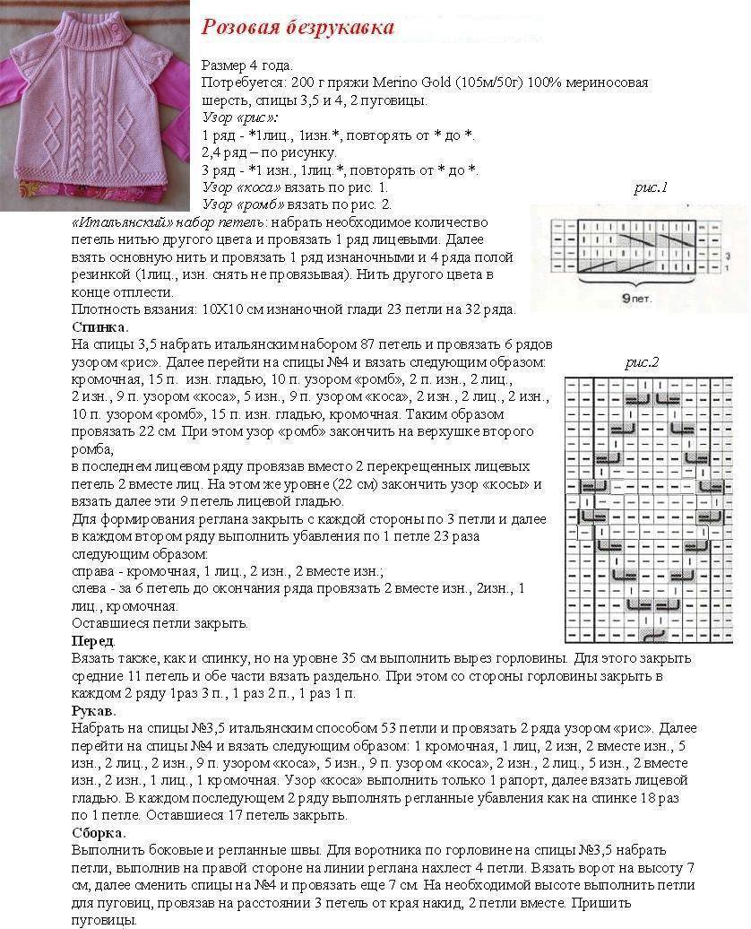 Розовый жилет для девочки спицами по схеме