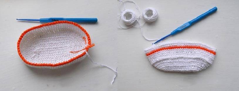 Теперь 3 ряда вяжем обычными столбиками с накидом, получаем «лодочку»: