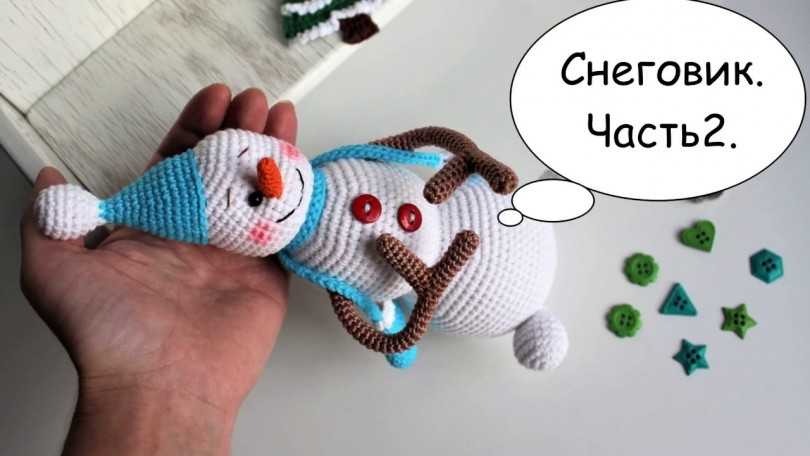 Видеурок: как связать снеговику глаза, пуговки, ручки: