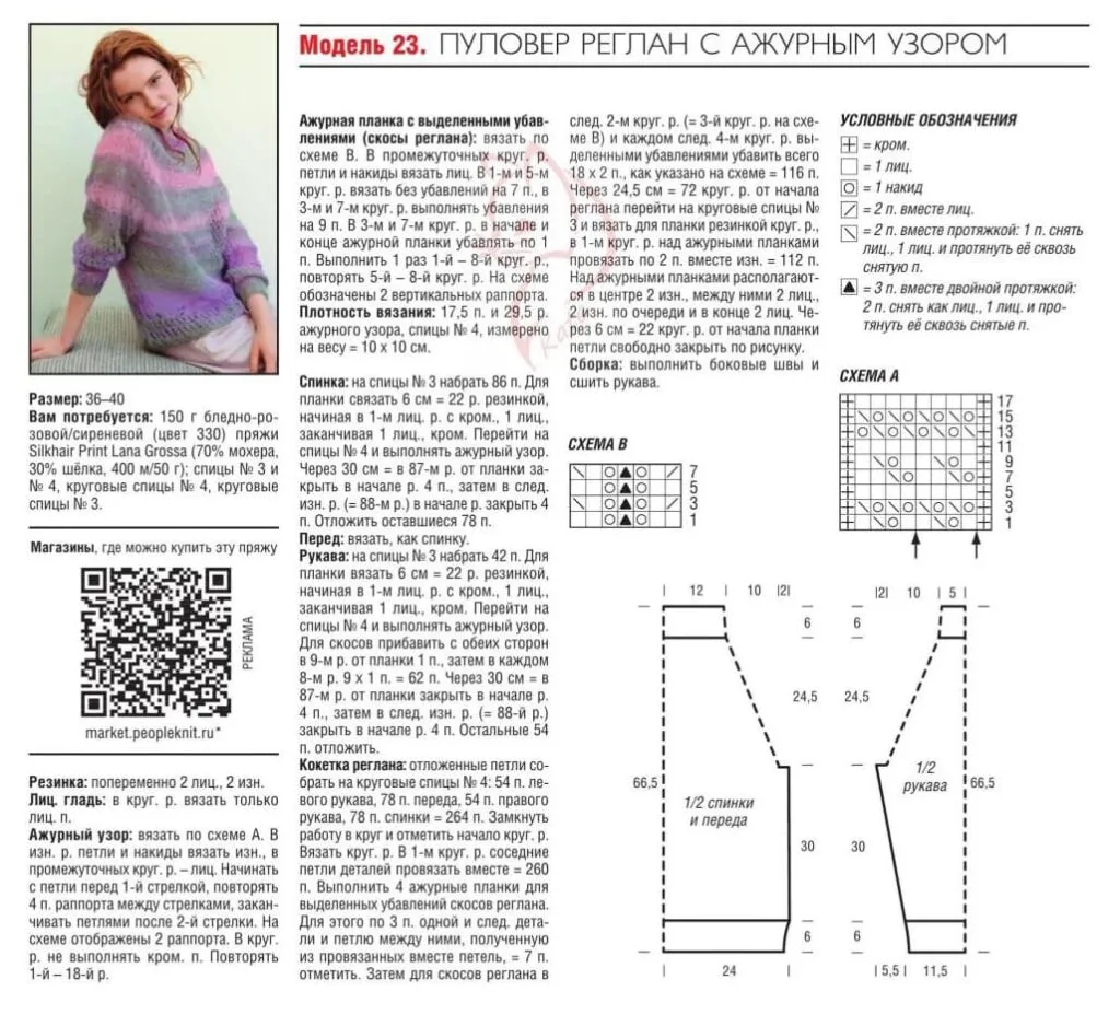 Мы знаем, что многие рукодельницы любят пуловер реглан и ажурные узоры. Поэтому в нашей подборке еще не раз встретится такое популярное сочетание.