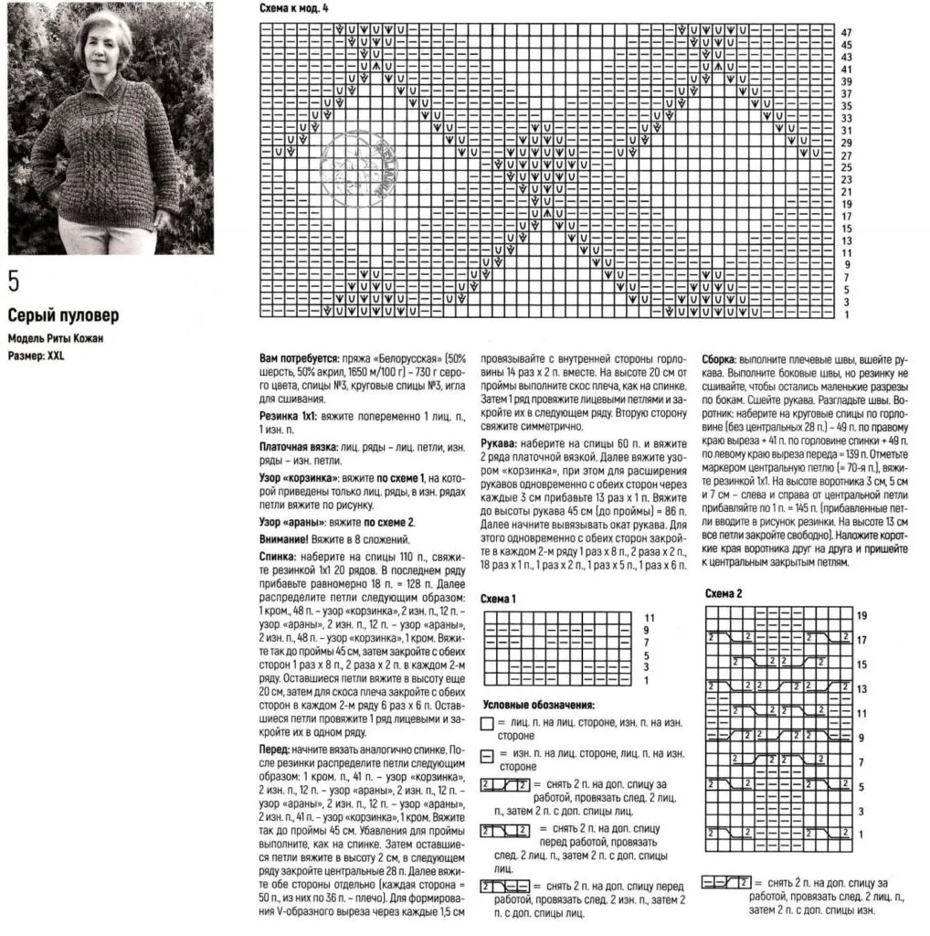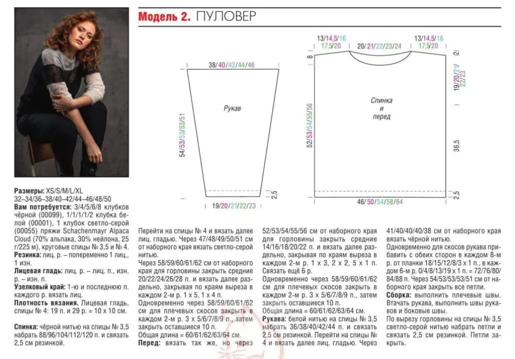 Пуловер рассчитан на статных женщин, поэтому размер указан XXL.