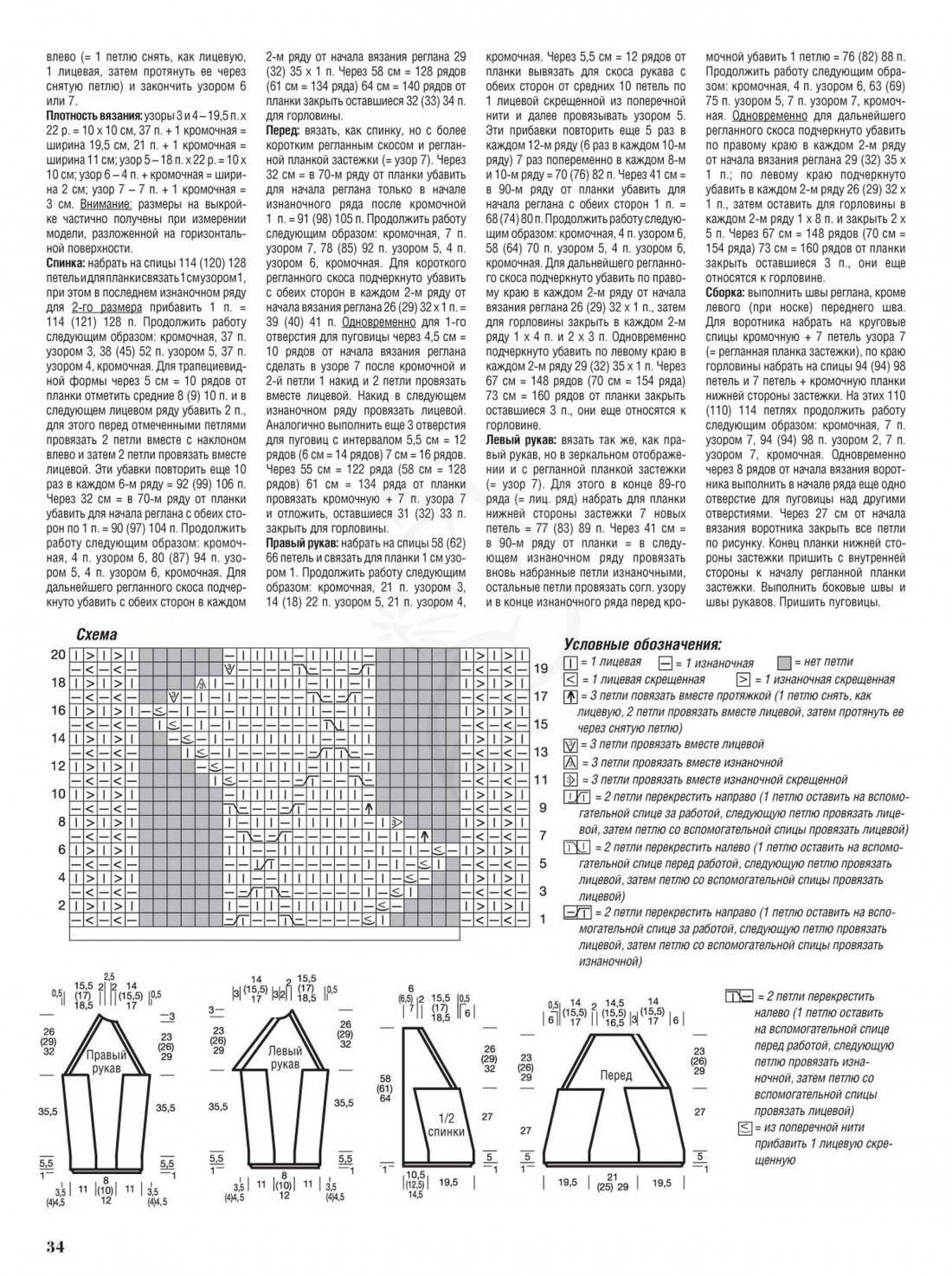 Затем закройте петли, провязав их лицевыми, поднимите по краям рукавов 34 петли и вяжите резинкой 4 ряда. После этого остается только закрыть петли и сшить детали.