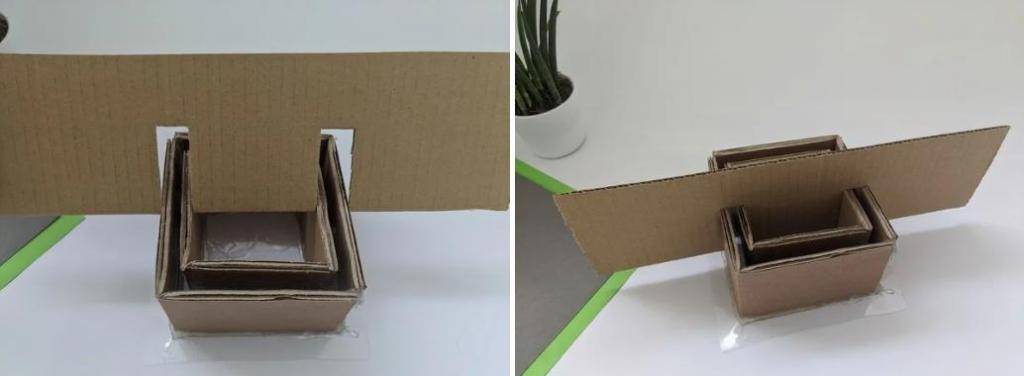 В зависимости от толщины вашего картона, может понадобиться создать опору, которая поможет предотвратить изгиб формы под весом цемента. Выровняйте толстый кусок картона в верхней части и зеркально отразите картонные стены. Поместите опору.