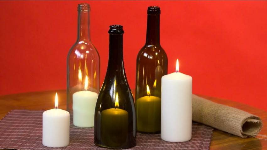При этом вам понадобятся: суровая нить, уайт-спирит, емкость, горячая и холодная вода, спички. Пропитайте суровую нить уайт-спиритом и обмотайте в несколько слоев место среза. Подожгите нить и вращайте бутылку. После чего погрузите на 4 мин. в емкость с горячей водой, а затем резко окуните в холодную воду.
