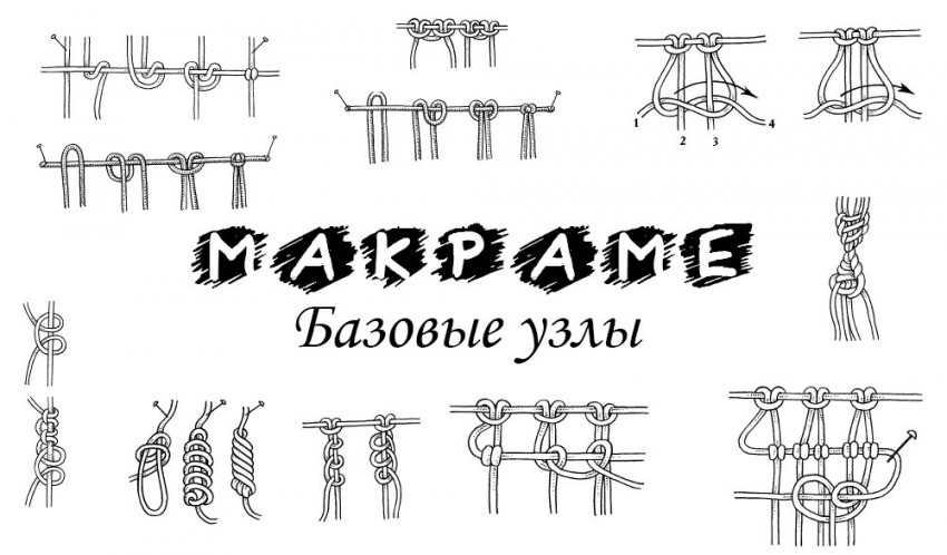 Узлы являются основой плетения в макраме. Есть разные виды плетения: плоское, фигурное, и без узелковое. Самый простой-геркулесов узел: