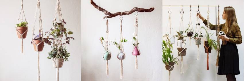 Для тех, кто рожден в СССР должно быть хорошо знакомо макраме по плетеным кашпо. В периоды 1980-2000 годов было не так много красивых интерьерных вещей в магазинах, и женщины старались украсить свой дом любыми подручными средствами. В журналах печатали статьи со схемами плетения кашпо, занавесок и абажуров в технике макраме. Но так как выбор материалов для плетения был не особо большой, то и создать необычные вещи было сложно. Плетение макраме было позабыто на несколько лет.