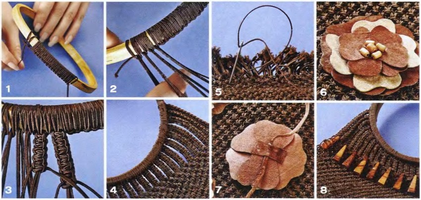 - Начинающим, например, мастера советуют начинать первые работы с использования толстого шпагата.