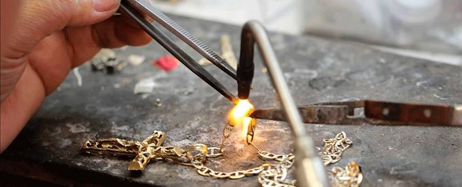 Как только металл побелеет, на нагретый участок цепочки положите небольшой кусочек золота, которого будет достаточно для спайки. Нужно дождаться, пока он полностью расплавится, растекаясь по деформированному участку изделия. Дайте золоту остыть, затвердеть. После этого с помощью маленьких кусачек уберите избыточное количество золотого припоя, обработайте спайку надфилем. Если вы все сделали правильно, то звенья будут запаяны. Аналогичным способом можно при необходимости уменьшить длину изделия. Только для этого сначала нужно будет открепить требуемое количество звеньев.