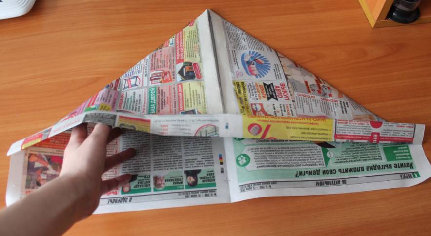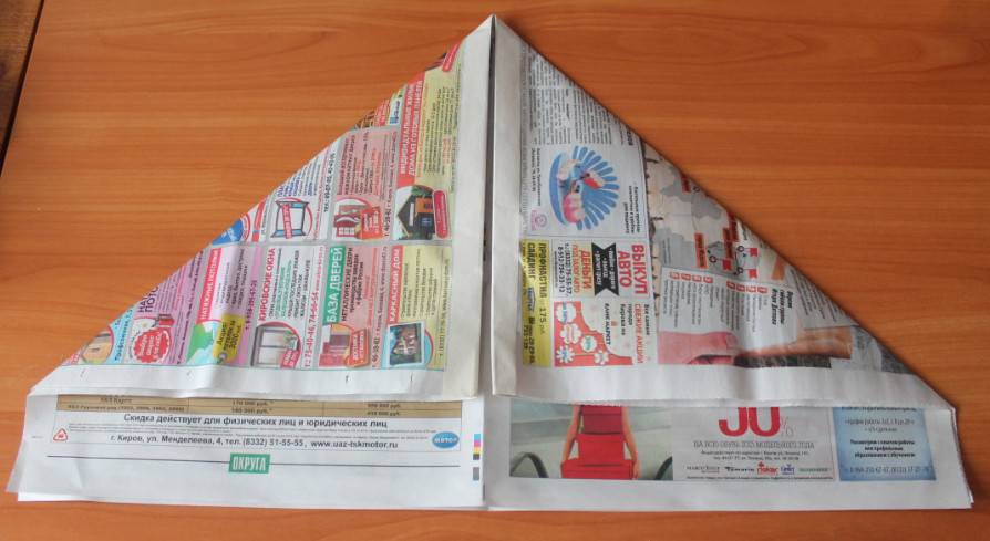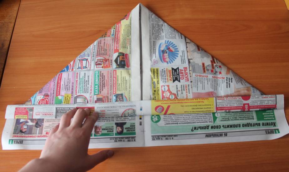 - Нижний участок газетного листа, который не тронули согнутые уголки, нужно поднять вверх. Делают это только с верхним листком.