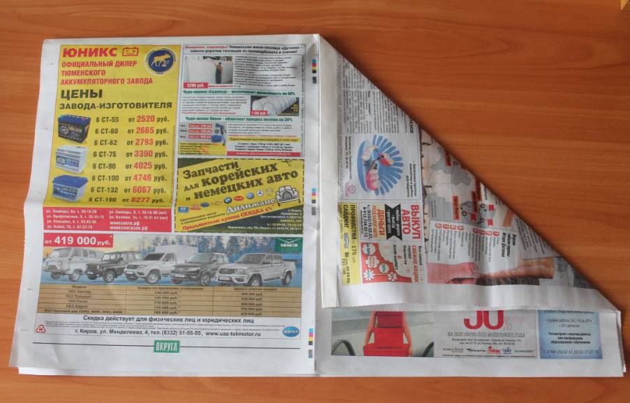 - полностью разворачиваем и раскладываем на столе лист большой газеты;