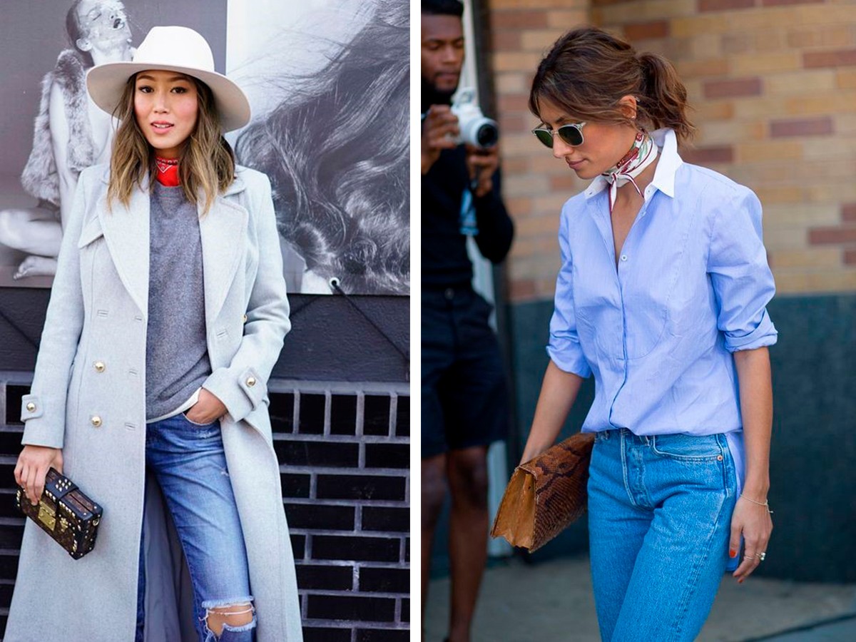 Яркий платок, плотно завязанный на шее, способен кардинально поменять весь ваш облик, а также усилить все нужные акценты.