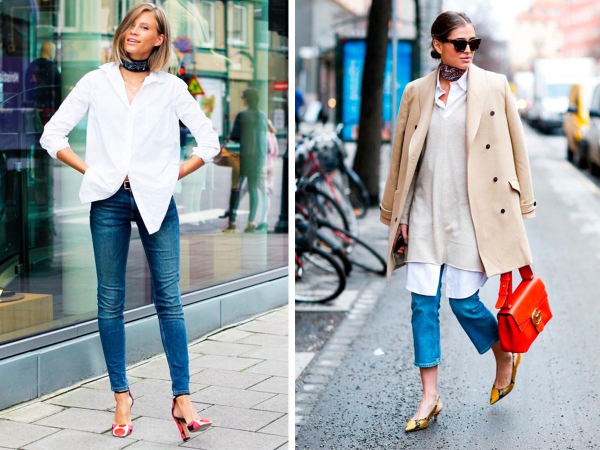 Универсальный вариант для многих: белая рубашка и яркий или более сдержанный чокер-платок! Беспроигрышный вариант!