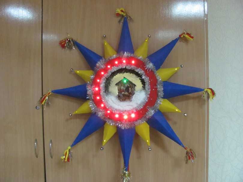 Когда-то давно в рождественские праздники по деревням ходили ряженые дети и колядовали. Среди колядующих были те, кто нес звезду на шесте, а иногда таких детей было несколько. Сейчас старые традиции возрождаются, пусть и не совсем в первоначальном виде. Но сегодня так же, как и в старину, многие делают Вифлеемскую звезду своими руками. Подойдет для этого почти любой подручный материал.