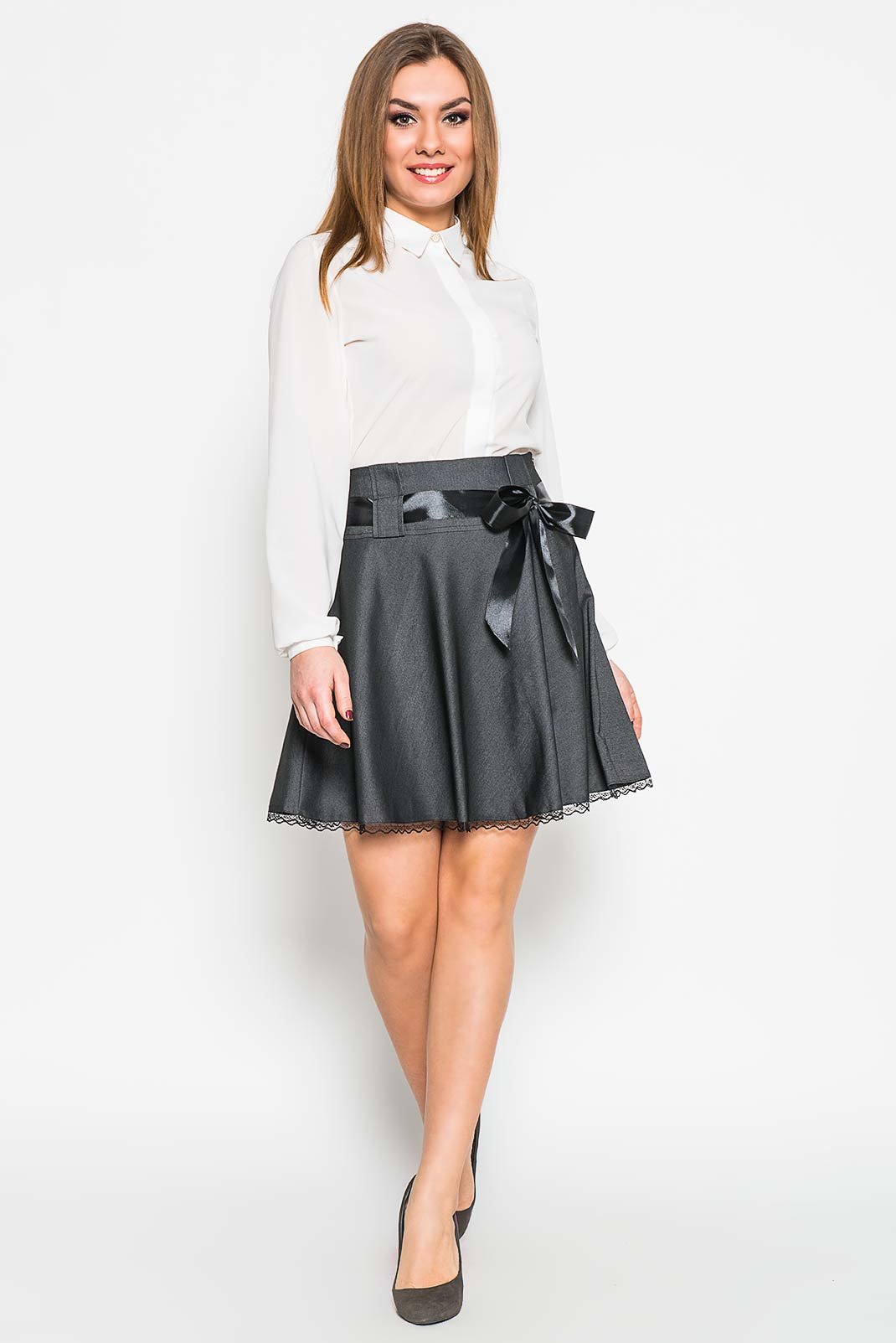 Девочкам школьного возраста подходит фасон полусолнце. С белой блузкой юбка смотрится и строго, и нарядно. Можно надеть сверху короткий пиджак.