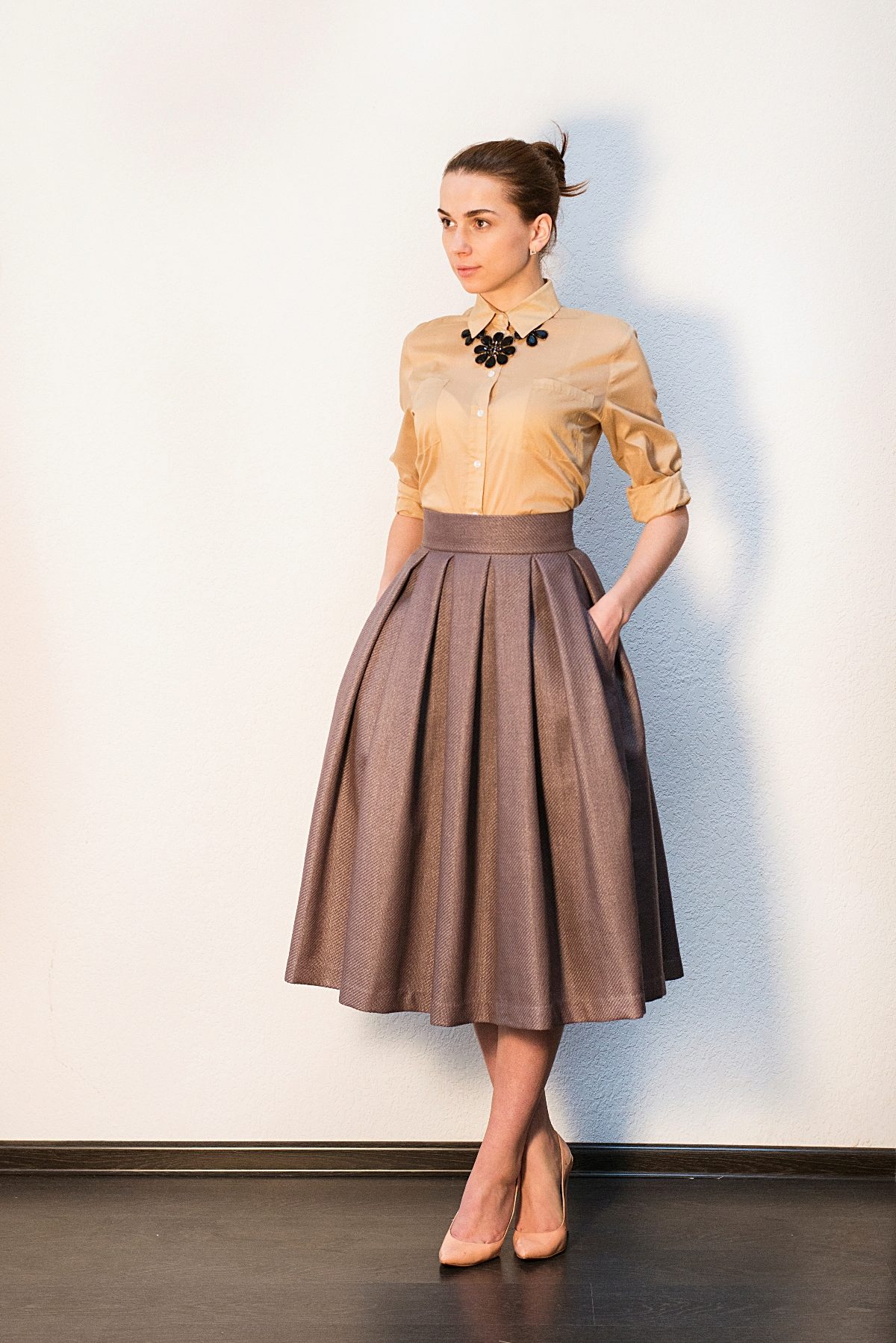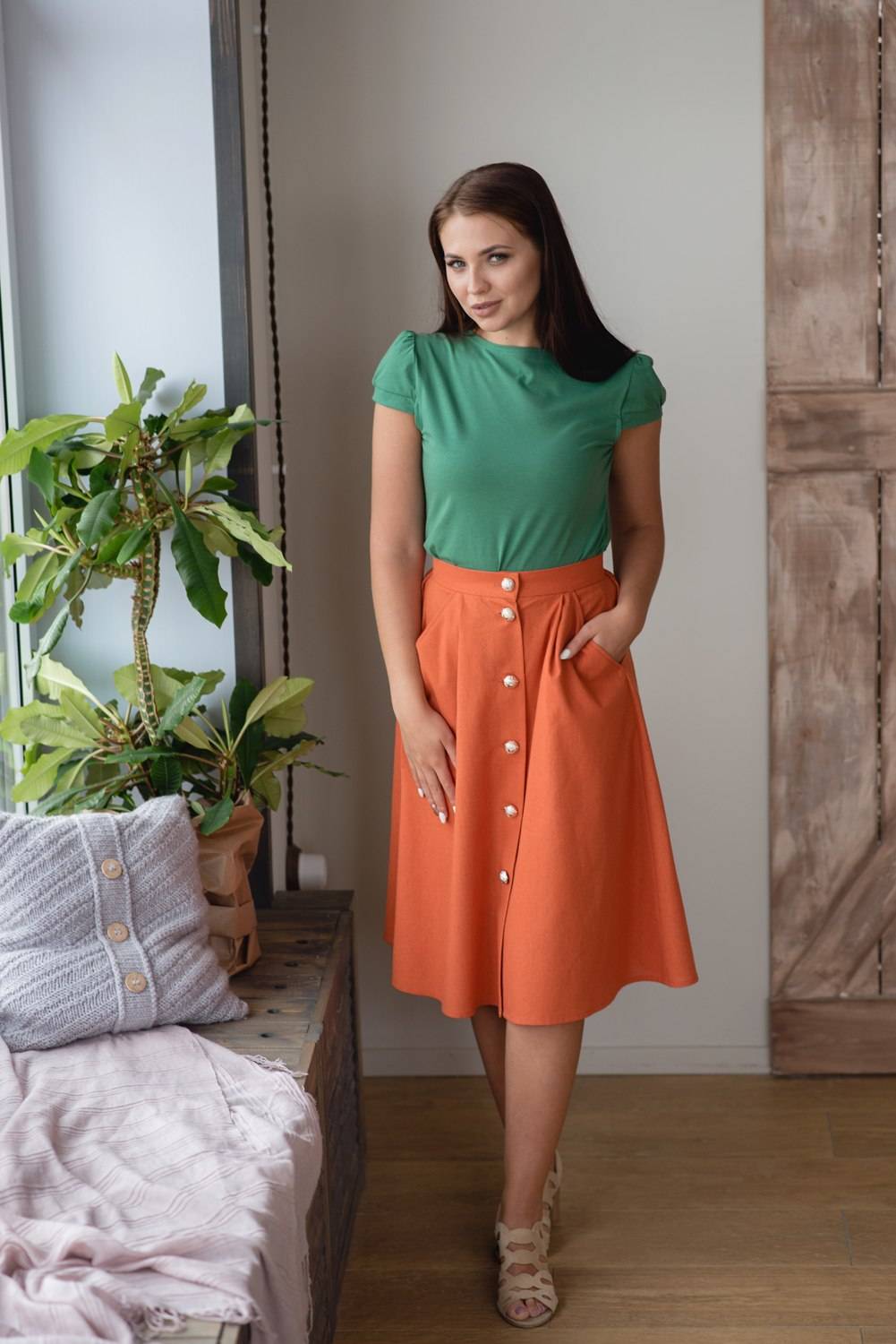 Время года тоже влияет на выбор ткани. Модели из трикотажа хороши для осени и весны, а юбка полусолнцем из льна просто необходима в летний зной. Шерстяные и габардиновые ткани не дадут замерзнуть зимой.