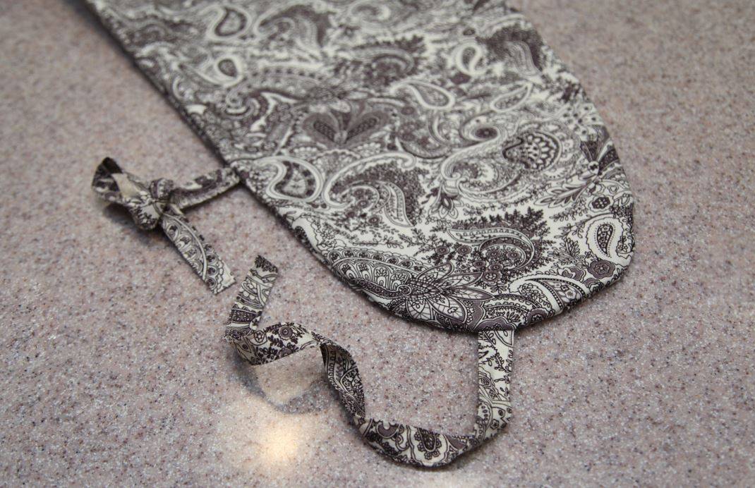 - Обтачанные завязки надо вывернуть на лицо, выправить их уголки и приутюжить в готовом виде.