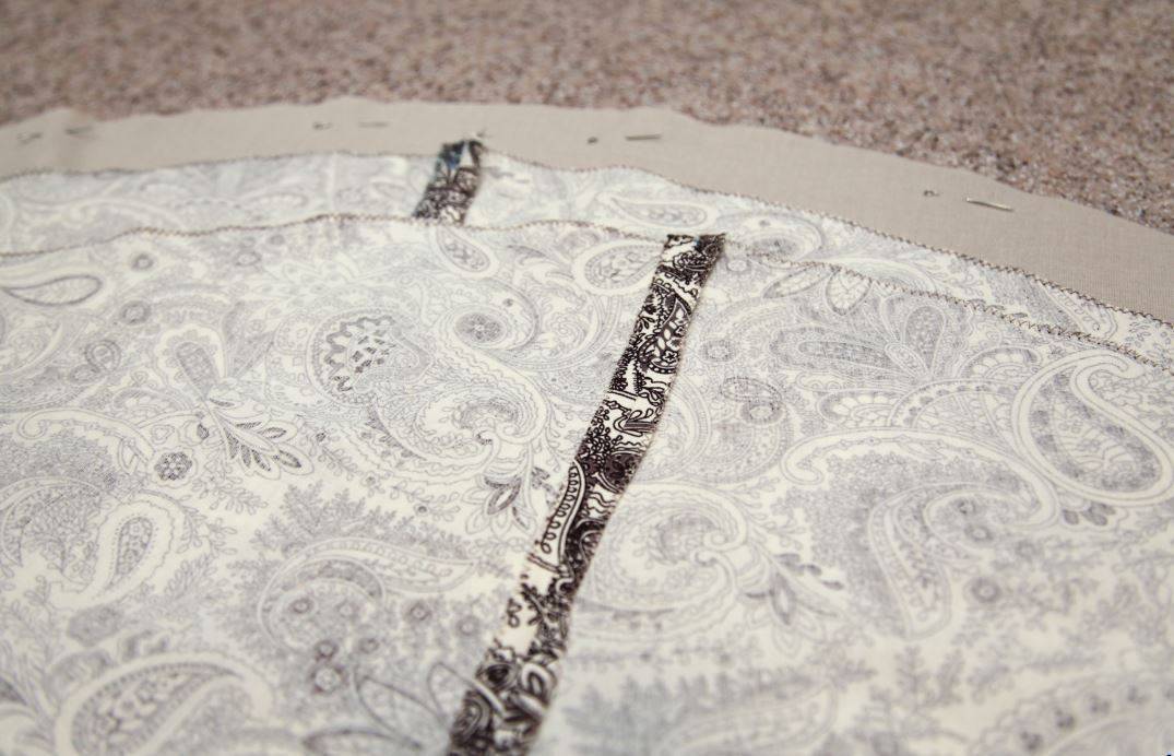 Завязки можно пристрочить отдельной строчкой или вшить их при выполнении контурного шва. Наличие завязок поможет подобрать нужный диаметр подушки и её форму.