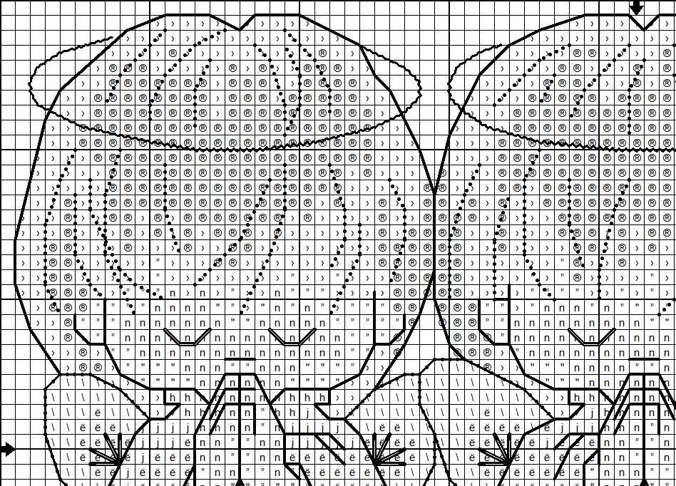 Для такой простой схемы не обязательно полное заполнение фона крестом, можно выполнить только вышивку контуров рисунка крестиком и контурную вышивку. Причем, цвет контурных ниток должен быть на пару тонов темнее, чем основной цвет.