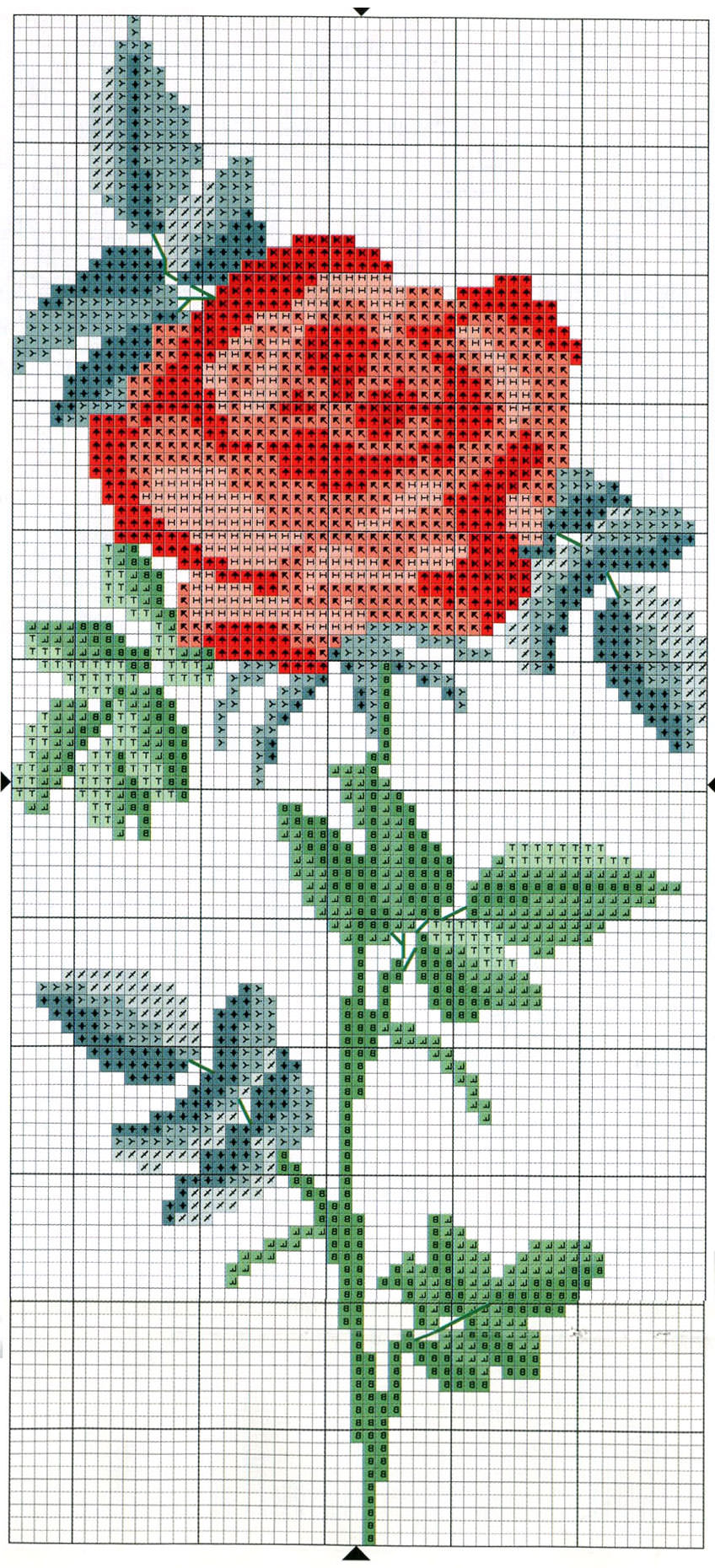 Начинать вышивку крестом можно с верхней или с нижней крайней точки, либо как советуют многие мастерицы, можно наметить центральную точку и перенести ее со схемы на канву. С этой точки и следует начинать вышивку крестом. После того, как роза будет готова, можно заключить ее в нарядную красную рамочку, используя атласную ленту. Ширина окантовки должна быть около 5 см. За готовой вышивкой ухаживают, как описано в предыдущем случае. Наволочку обязательно простирывают в чуть теплой мыльной воде, сушат, разложив на полотенце, и проглаживают утюгом на средней температуре через светлую тряпочку.