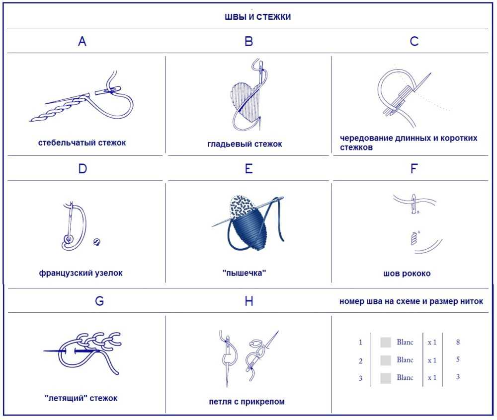 На схеме указаны буквами виды швов, а цифрами – вид ниток. Скачивайте рисунок и, во время вышивания, сверяйтесь со схемой, чтобы не запутаться. Успехов!
