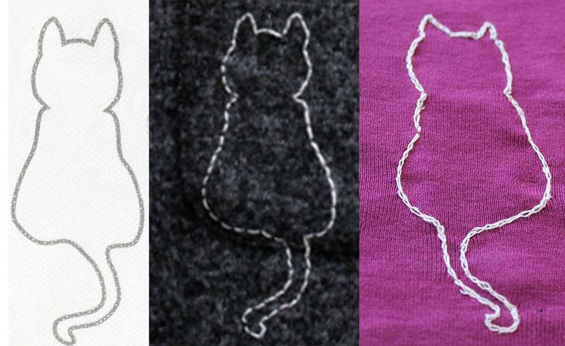 Ты любишь свою кошку? Тогда используйте рисунки вышивки кошки. Кошка такая милая и вам обязательно понравится вышивать цветы! Просто проходите очертания швом назад иголка, а также используйте свои и другие разнообразные швы.