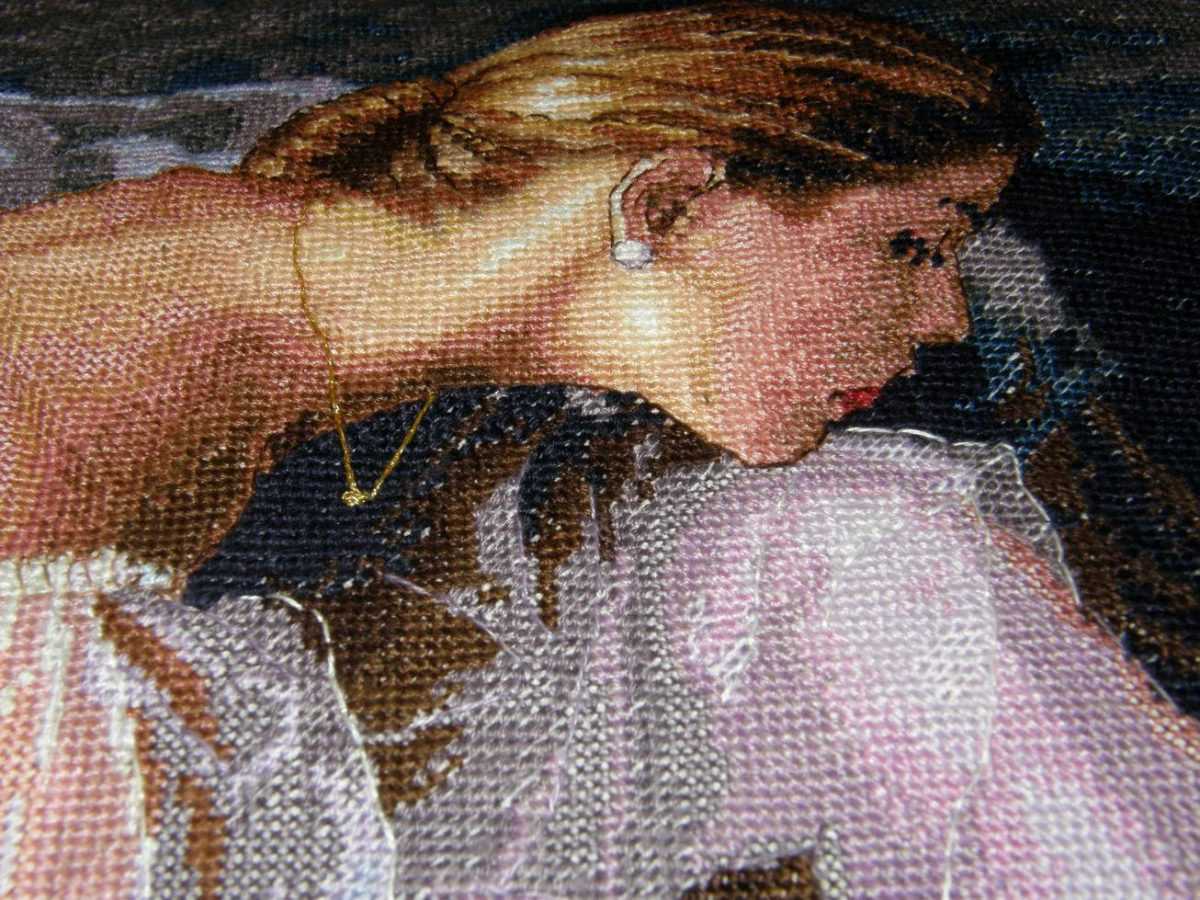 Начинайте работу непременно с центра. Так вы скорее увидите ожидаемое изображение прекрасной девушки. А чтобы не сбиться, используйте при вышивке маркер, зарисовывая им на схеме вышитые участки.