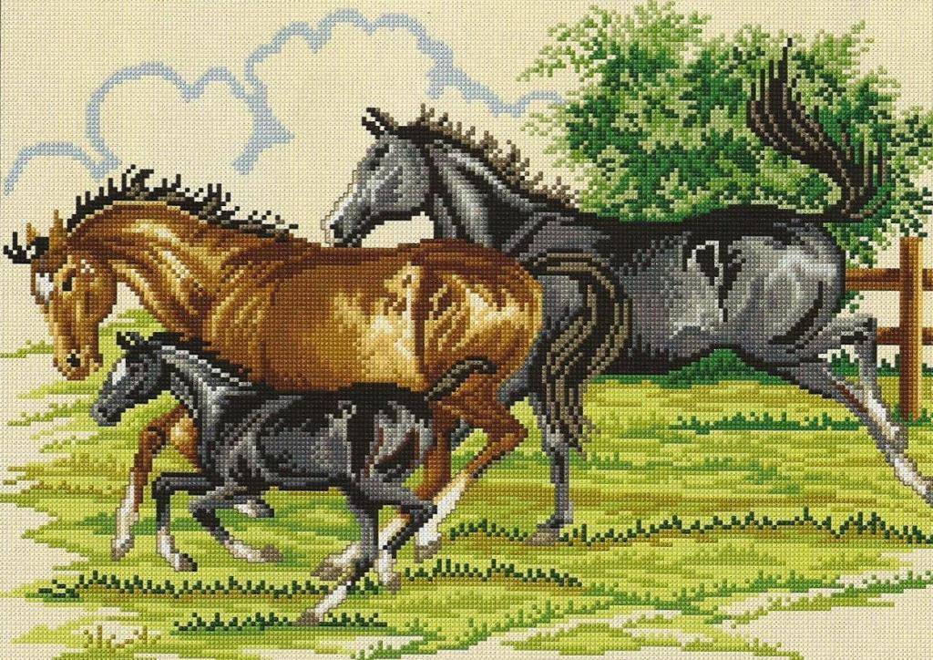 Вышивка крестом лошади: схемы и наборы, бесплатные, пони бегущие по воде, Риолис для девушек