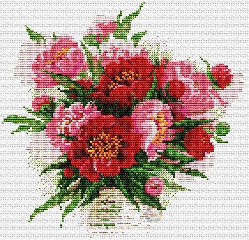 Вышивка крестом пион: схемы и набор для вышивания, скачать бесплатно, ваза и фото, букет Риолис, значение