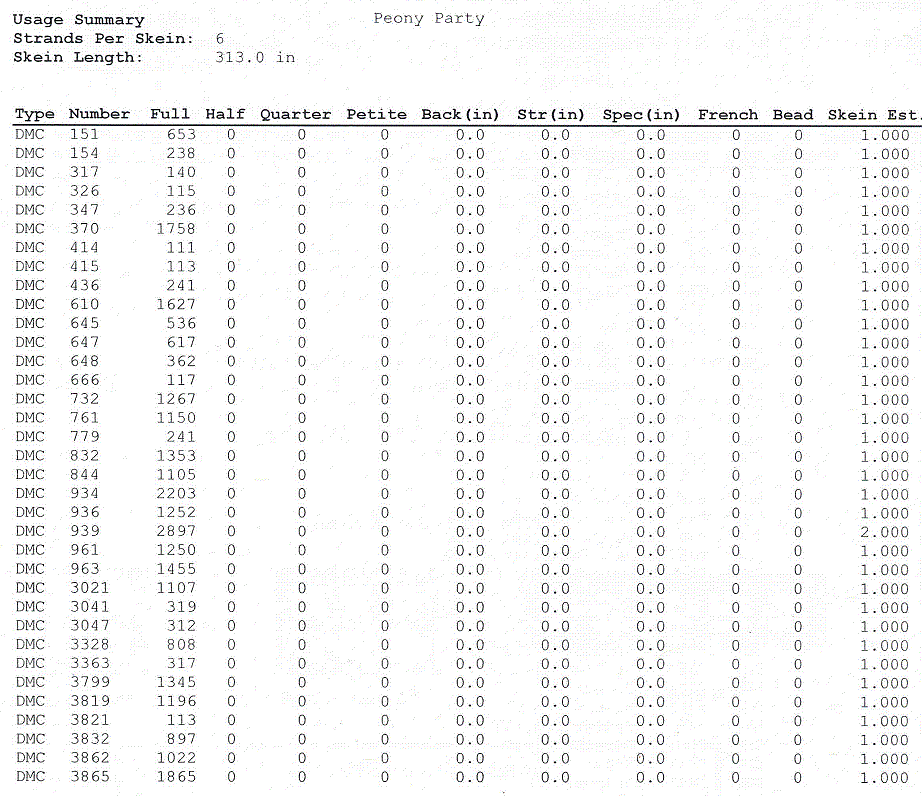 Перед тем, как приступать к вышивке пионов, лучше всего сделать пометки на всех мотках ниток мулине, чтобы не запутаться. На пометках должны находиться символы, которые содержит таблица и схема.