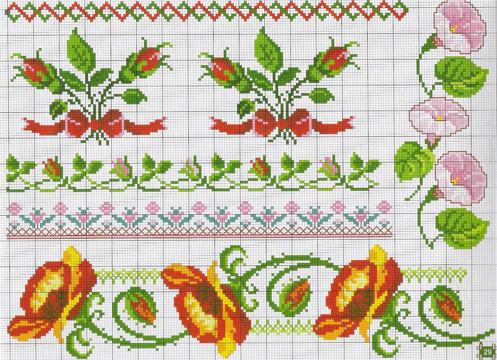 Иногда, чтоб оформить полотенце или сделать вышивку на одежде, требуется более ажурная и красочная кайма, чем с геометрическим рисунком. В этом случае рукодельница вышивает цветочные орнаменты.