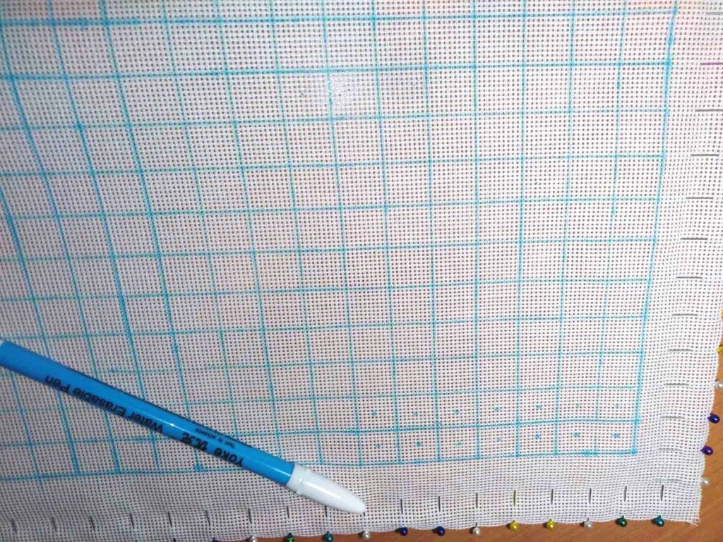 Теперь отрез нужных размеров необходимо разметить. Этот процесс трудоемкий, но необходимый при работе со счетным крестом.