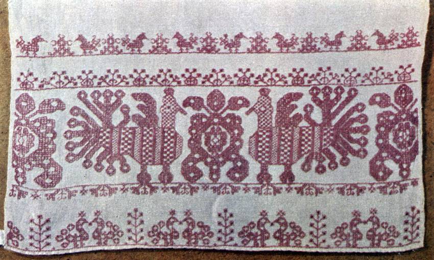 Предназначенные для повседневного использования изделия также нередко украшались вышивкой. Такие полотенца изнашивались, заменялись новыми, поэтому вышивальные схемы были не особо сложными, а любимые узоры рукодельницы могли произвольно менять, без боязни навлечь «гнев» высших сил.