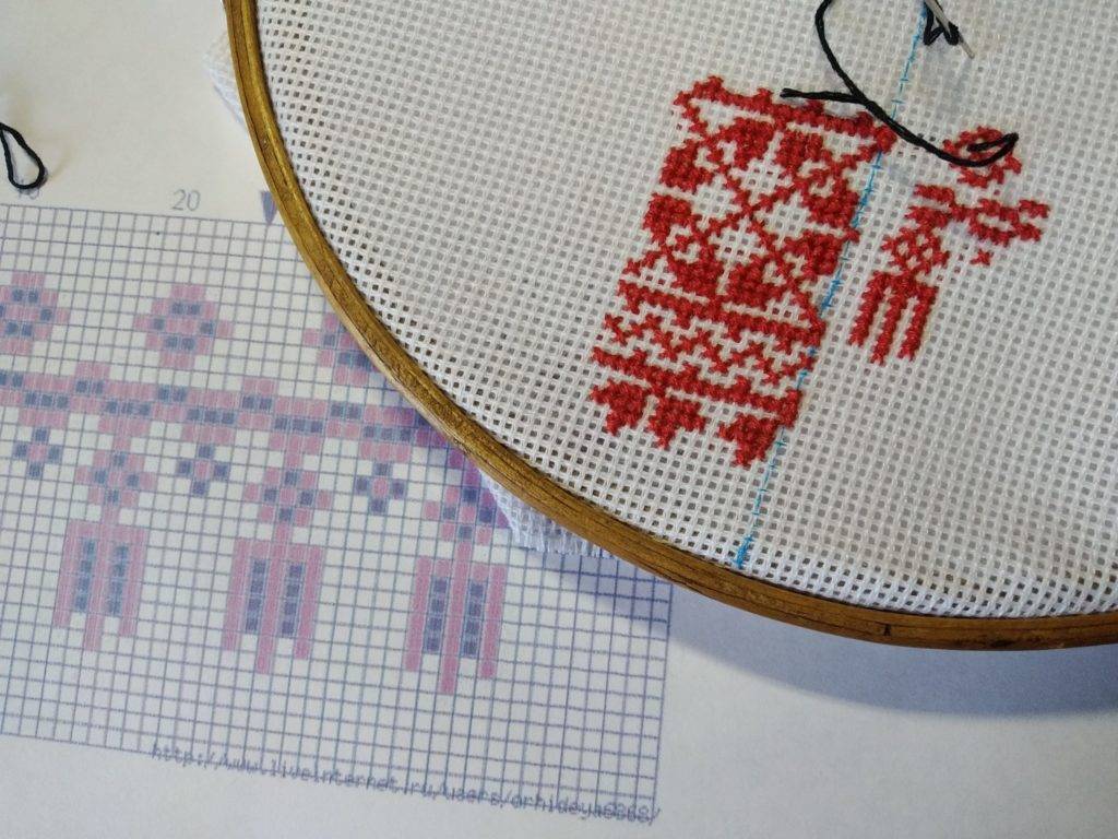 Следите, чтобы изнанка имела презентабельный вид, поэтому крепить нить стоит невидимым способом, например, микростежком. Далее двигайтесь по узору крестиком или в той технике, что выбрали.