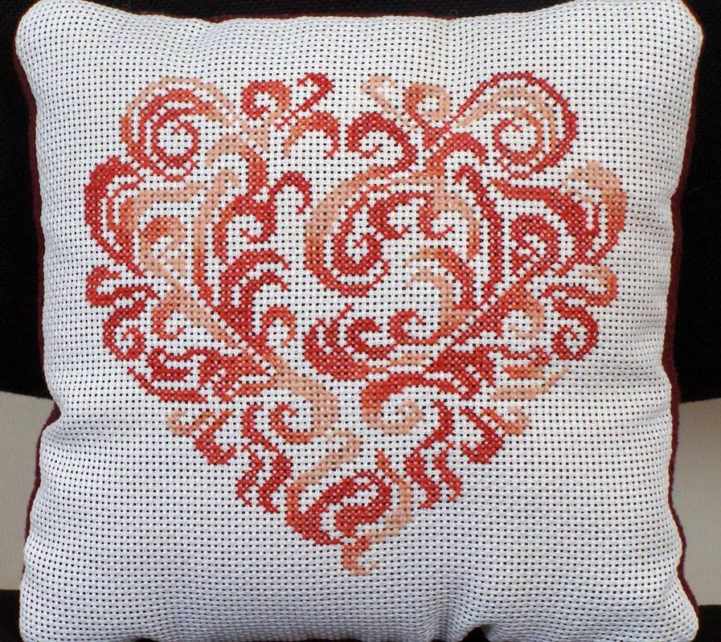 Подушка, декорированная монохромной вышивкой в форме сердца
