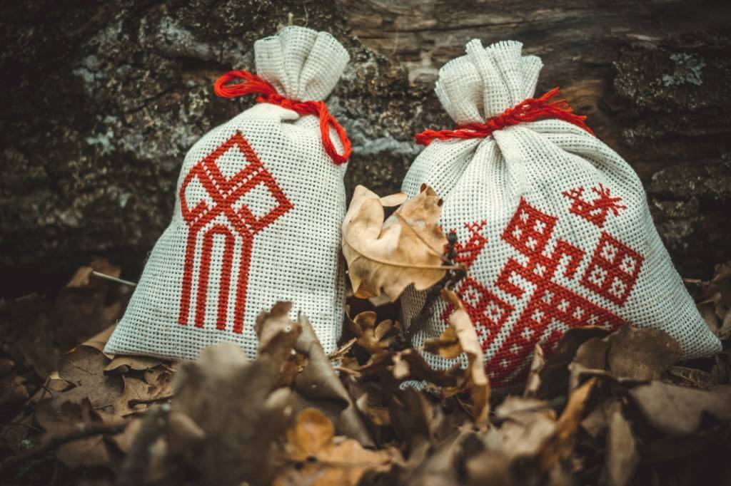 Отличным вариантом упаковки сувениров к празднику станут именные текстильные мешочки. Достаточно вышить имя на ткани и использовать как лейбу.