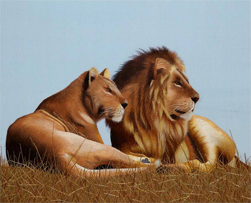 Мастерицы, создавшие картины в китайской технике, выставляют их на выставках, чтобы все желающие могли насладиться утончённым и неповторимым световым преломлением нитей, которые оживляют изображение и кажется, что к тебе сейчас выпрыгнет из рамки живой мягкий тигр или шелохнутся от дуновения тихого ветра утончённые белые лилии. Такое оригинальное произведение можно подарить любимому человеку, оно станет настоящим украшением и ценным подарком!
