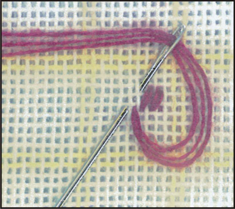 Игла для вышивания крестиком не должна иметь острый кончик и повреждать канву. Ее закругленный конец должен раздвигать волокна основы и попадать в угловое отверстие.