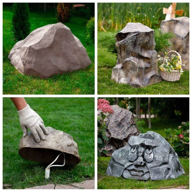Из пенного герметика лучше всего получаются фигурки, имитирующие живых существ: животных, гномиков, овощи и фрукты, улиток, грибы, пеньки, декоративные валуны.